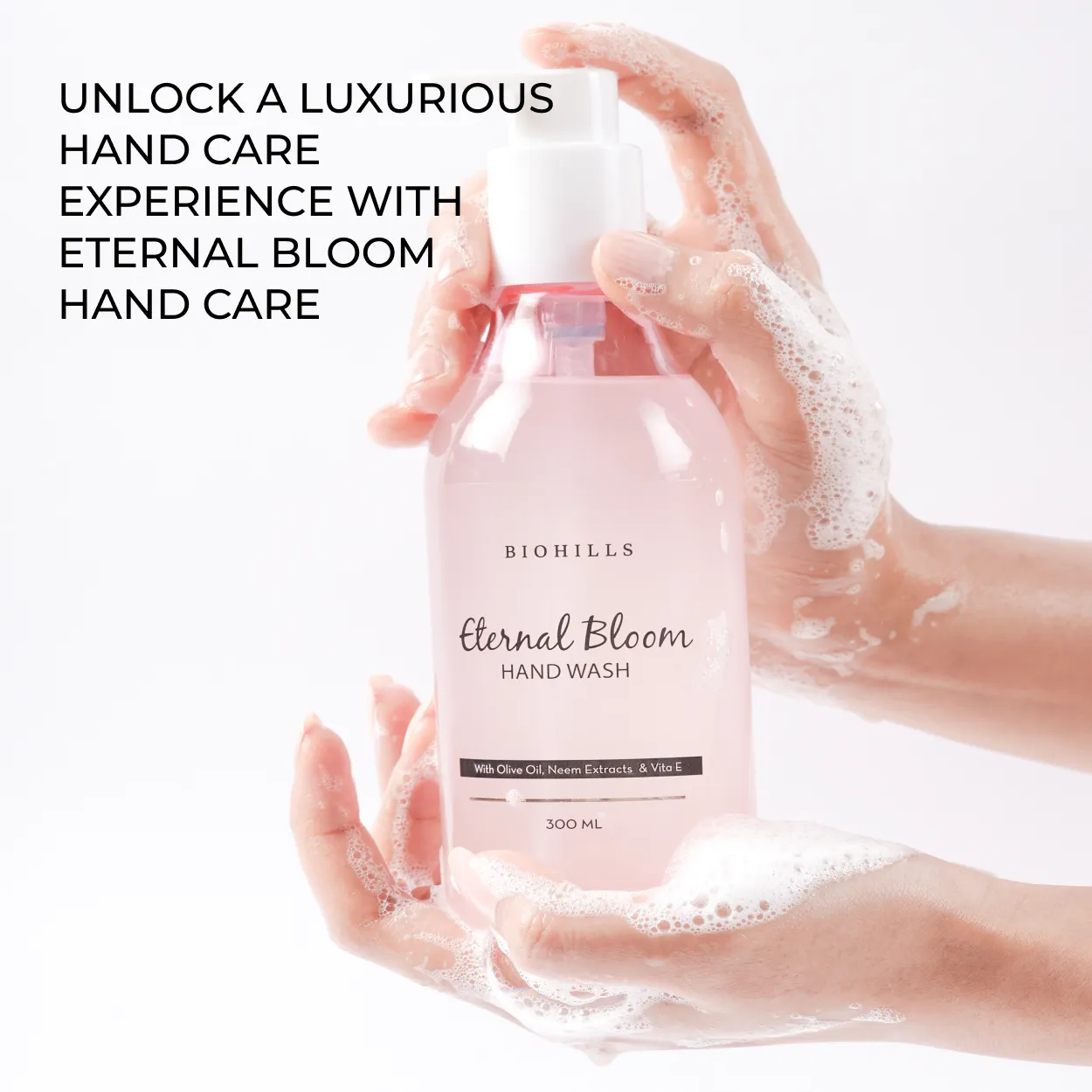 Introducing Biohills Eternal Bloom Hand Wash, your luxurious solution for clean and nourished hands. Infused with the calming fragrance of jasmine, this hand wash combines the cleansing power of neem leaf extract with the moisturizing benefits of olive oil and the protective properties of vitamin E. Each wash leaves your hands feeling soft, hydrated, fragrant and refreshed. Elevate your hand care routine with Biohills Eternal Bloom Hand Wash and experience nature's best ingredients in every use.